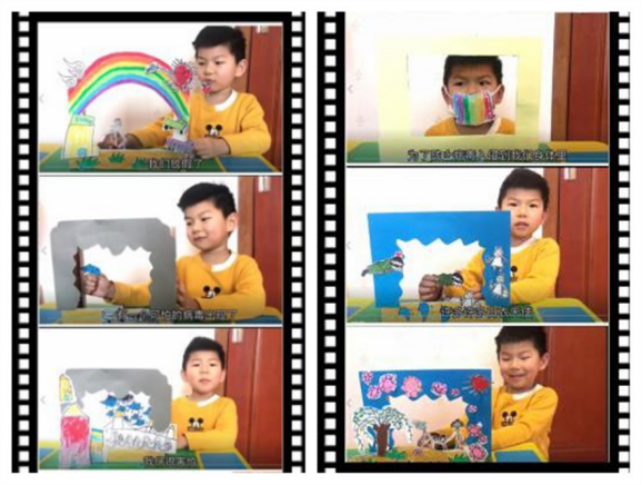 第四这幅作品同时让人非常非常感动的是在立体绘本的制作过程中所用材料都是利废利旧,体现出低结构、情境性、儿童性三个特点,孩子作为主角,在这样的创作中感受到自信、乐趣、战胜疫情的勇气。家长在这个过程中和孩子们共同成长、共同进步。老师,家庭,孩子,幼儿园形成了一个多维的共同体,促进孩子整体的发展。