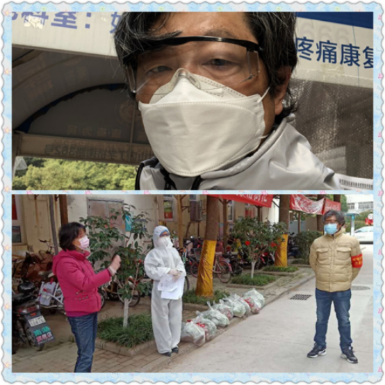 “请老师们把家庭地址发我微信上,我为大家派送防护物资,请大家保持电话畅通......”。2月16日,学前教育学院副院长汤晓宁一大早就出门,代表学院去学校领取防疫物资,并亲自将防疫物资送到遍布在武汉三镇的近20位学前志愿者手里,大家称他为“学前最帅护花人”。在下沉社区期间,他主动和社区医护人员家属对接,提供一对一服务,并将社区慰问品送到医护人员家中;小区门岗值守严格核对;第一时间为小区业主代购生活用品、药品等,不计得失,从无怨言。