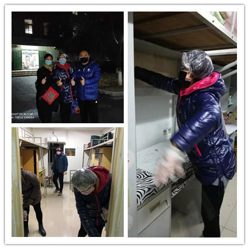 27日,学校接到武汉市新型冠状病毒感染肺炎疫情防控指挥部的通知,根据武汉市疫情防控需要,决定征用我校南区第1516171819栋学生宿舍1000个房间,用于全市疫情防控工作,实行封闭管理。接到通知后,学校立即动员党员、干部和教职工志愿者到校开展相关工作。我们院长东波书记晓宁副院长高芳梅老师一家三口宋英老师,谢民老师,胡海燕老师和马豫老师夫妇立刻前往学校南区参加宿舍改造工作,一直持续到凌晨两点