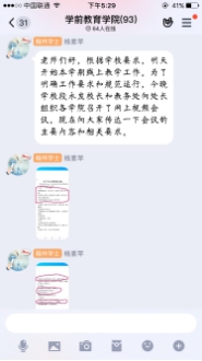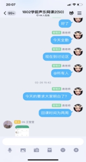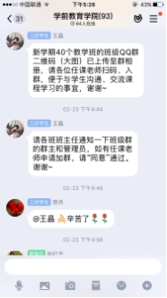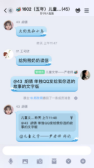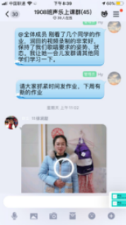 在课堂教学过程中,老师们用各种平台、各种手段上课,很多技能课程老师不仅亲身示范,为了关注学生是否掌握,布置一次作业需要花很多时间批阅,还在线语音辅导、纠错……幼儿教师口语陶秋兰老师,上课工具就一个手机一支笔一个本子,本子上手抄了所有学生的名字当记分册,记录他们朗读中的问题和分数。通过QQ群的“群课堂”、“语音通话”这两个功能进行集体教学和针对性辅导,上下课时间与课表、作息时间一致,不耽误学生其他时间,学习效果好。