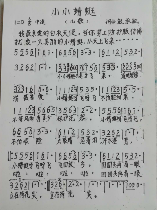 近日,由伟徳官网退休教师熊承敏教授创作的抗疫儿童歌曲《小小蜻蜓》在全国流传开向奋战在抗击新冠肺炎疫情一线的广大医护工作者、新时代的白衣天使致敬!