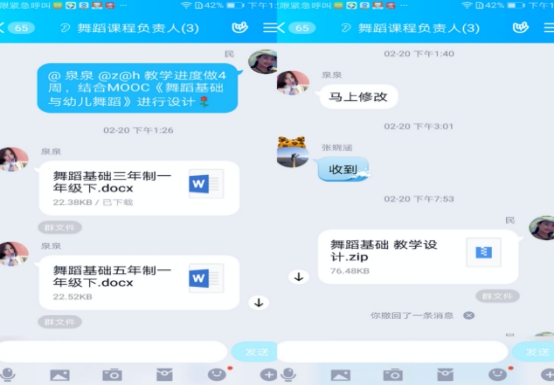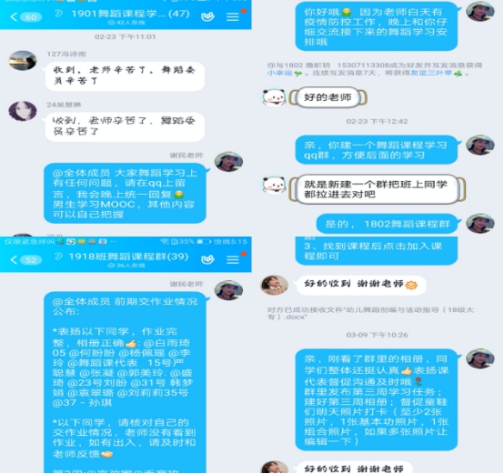 安佳同志主动报名志愿者,参与社区防控工作,她就像一颗“螺丝钉”,哪里需要就出现在哪里。她承担了19级幼管、大专及18级大专六个班的舞蹈教学工作。在线上教学的特殊形式中,她与学生互动紧密,做到了线上教学有效感与适应性逐步提升。她以课前预习视频任务从mooc资源选取,基本功打卡上传群相册,课中以qq直播群课堂及教学腾讯会议的形式进行授课,此外,她利用课余时间把重难点内容录制成小型的微课视频,更方便课后直观有效的巩固知识点,让学生在线学习不迷茫,见实效。