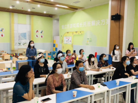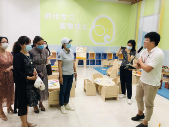 讲解结束后,主办方对公司托育项目进行整体汇报,分享了国家《关于促进3岁以下婴幼儿照护服务发展的指导》等支持政策,对目前湖北省尤其是武汉市托育行业的场地、人员、管理、托幼衔接等方面的现状进行了分析,对其公司开发“游戏成长”托育整体解决方案创设过程中的产品结构、课程解读、师资培训、科研转换成果等方面进行了介绍。爱立方总编辑郁丹则对领导们的到来表示热烈欢迎,对托育方案的课题成果以及其规范、专业、科学的特性分别进行了分享,以期望各方鼎力支持,共同助推托育教育的新发展。
