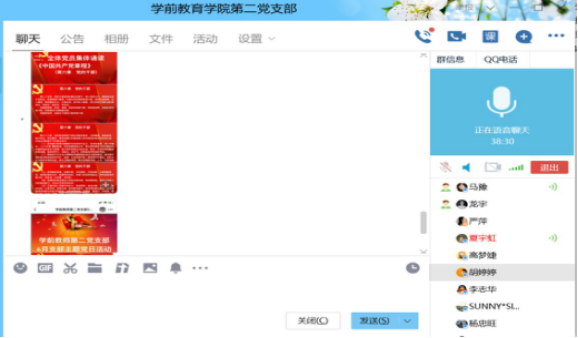 学前教师第二党支部月份党支部主题活动QQ群会议在党支部书记马豫同志的主持下召开。会议根据要求仍然采用“5+N”的模式进行。