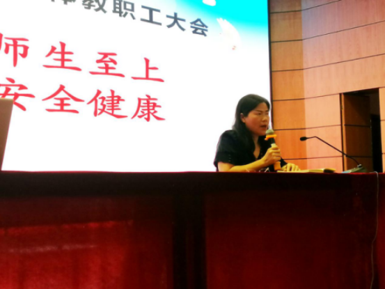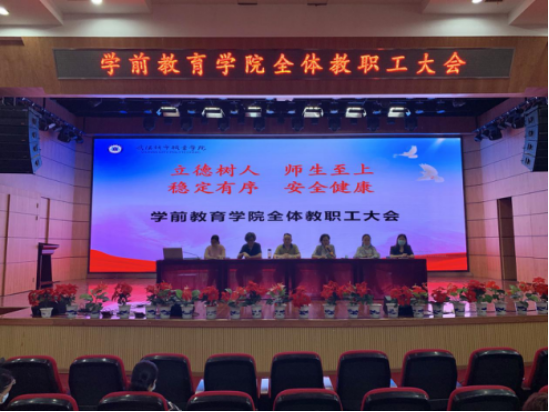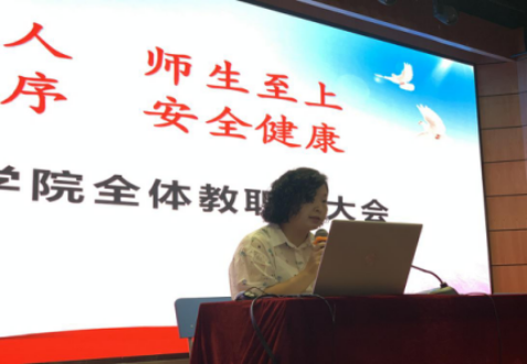 办公室主任许萍首先对全体教职工的健康状况进行了通报,接着对学院秋季开学暨疫情防控方案从总体要求、工作原则、领导小组、具体措施等方面进行解读。希望全体教职工增强责任意识、强化责任担当,加强工作落实。