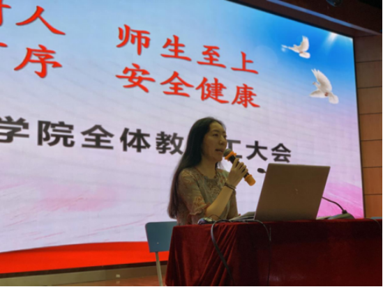 副院长杨素苹从落实责任课堂制度,保障课堂高效性;全员参与,落实精准防控;关注学生心理健康,做有温度的教育;在专业群建设的前提下加强教师队伍建设等方面做了安排部署。