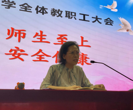 随后党总支书记金东波从解读学校近期会议精神、疫情防控要求、党组织和党员下沉社区、全国文明城市复评与省级文明单位争创等方面进行工作部署并提工作要求。他指出,疫情防控进入常态化,全体教职工要认清形势,坚定信心;转变观念,提高抗疫信心,做主动参与者;主动作为,立足岗位,遵守纪律;团结合作,互帮互助,多关心关爱学生。