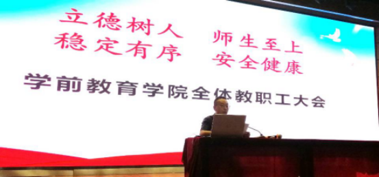 副院长汤晓宁对实训室建设情况做了详细说明,希望老师们上课前各自检查落实实训室设备的完好性,保证开学顺利进行。对于实习工作,他指出,因疫情防控的特殊性,后续在完成合作园所调研后,结合幼儿园实际,再制定18级毕业班教育实习计划、2020级新生班半日入园观摩计划。