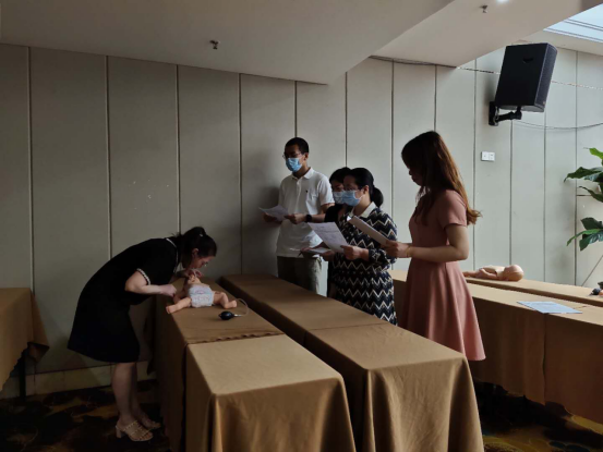 本次幼儿照护培训班时间紧任务重,学习内容是理论和实操并重,团队教师白天进行课堂学习,晚上利用休息时间积极讨论,0到3岁幼儿照护中的医学知识是团队教师的弱项,王俊老师、吴淋果老师耐心解答老师们问题,进行指导。在最后的考核结业环节,高芳梅老师、郭雅婷老师进行了心肺复苏操作流程的考核,团队其余老师承担考评员实习工作。特别是高芳梅老师忍着腰痛进行练习,让团队成员深受感动。张雪萍副院长与组委会积极沟通交流,和周颖老师认真思考证书考评点的落地方案。