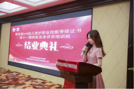 早期教育专业团队充分珍惜本次的学习机会,认真学习,参与培训班的各项工作。郭轩老师被全体学员选举为培训班班长,梁爽老师为学习委员。在25日的结业典礼上,郭轩老师最为本次第十一期培训班的班长,代表全体学员进行了总结发言,梁爽老师担任本次结业典礼的主持人。