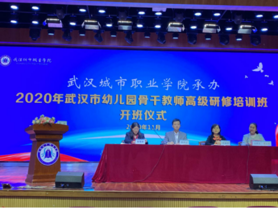 金秋时节,来自武汉市各幼儿园的100名骨干教师相聚云端,开展为期8天的2020年武汉市幼儿园骨干教师高级研修培训班。11月17日下午2点30,在伟徳官网小礼堂举行了隆重的开班仪式。开班仪式由BV伟德官方网站继续教育学院董云燕主任主持,武汉市中小学校长教师继续教育中心彭开云主任、BV伟德官方网站继续教育学院汪福秀院长、伟徳官网张雪萍副院长出席开班仪式,班主任、志愿者、工作人员与全体学员参与会议。