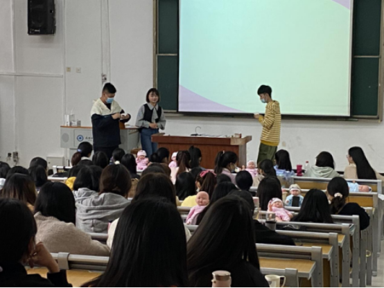 本次培训共涉及语言认知、社会性亲子活动、婴幼儿动作发展、日常保健、生活照护、环境创设等专题模块。针对幼儿安全防护中四肢骨折幼儿现场救护、心脏复苏等处理措施,老师们专门搬来仿真娃娃,通过模拟实操,帮助学生进一步理解、掌握幼儿日常照护及急救方法。