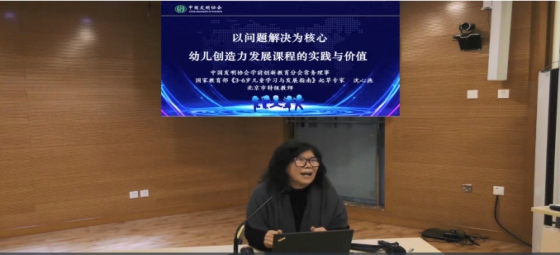 最后一个讲座内容是由中国发明协会学前创新教育分会常务理事沈心燕老师带来的《以问题解决为核心,幼儿创造力发展课程的实践与价值》。