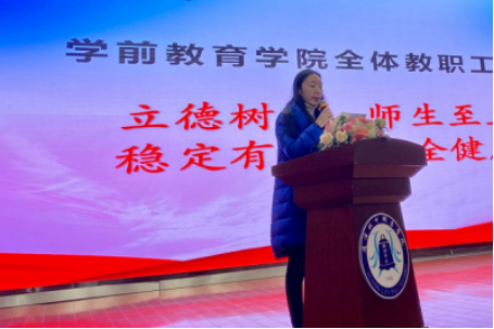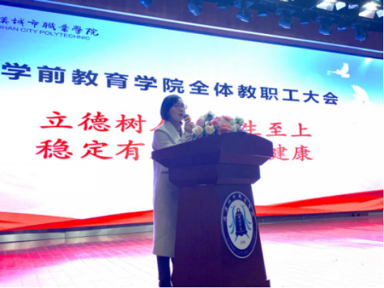 大会第四项,教学办副主任赵红杰就18级大专、19级新疆、中高职衔接及16级五年共计23个班,911名毕业生顶岗实习做工作安排。她特别提到,对于红黄预警的学生,指导老师务必特别关注,用心用情做好一对一管理,预防安全隐患,做到零事故。