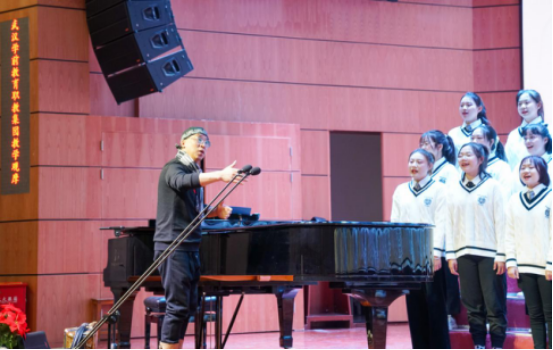 在艺术楼演播厅,张利军主任进行了声乐基础与儿歌演唱的教学展示。《声乐基础与儿歌演唱》是学前教育专业基础必修课,张老师运用肢体动作,带领学生体验不同发声方式呈现出的不同效果,在讲解歌曲演唱技巧时,通过强弱对比法和歌词的词语表现法,帮助学生加深对歌曲情感和表现力的理解,音乐的快乐跃然于学生们的脸庞。