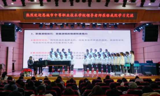 随后,学院邀请恩施市中等职业技术学校、武汉学前教育职教集团成员单位老师观摩了由学前音乐、学前舞蹈、儿童文学、学前美术四个教研室展示的精品公开课。