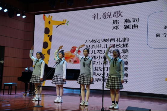 随后,儿歌展演“第一场——四季的问候”正式上演,我们既见到了美丽的迎春花,也看到了可爱的雪娃娃;既能听见滴答的雨声,也能感受到风儿吹吹的爽飒。