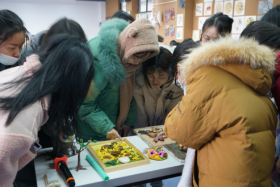 接着彭老师通过优秀学生作品着重讲解了超轻粘土的基本技法和调色技巧,最后在运用与创新方面,彭老师以清代名画《百子图》为例,分析了如何在现代材料超轻粘土中注入传统文化的基因,以此来提高学生的审美和人文素养,响应国家对于学校美育工作的新要求。