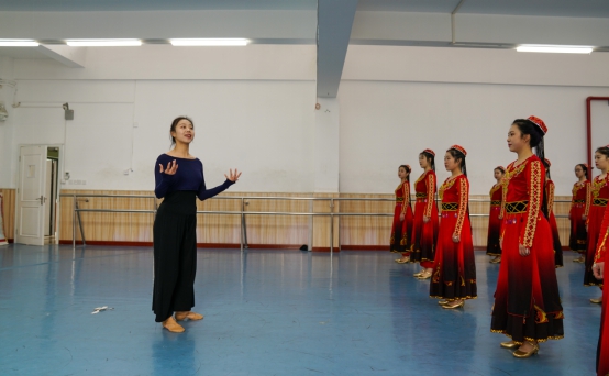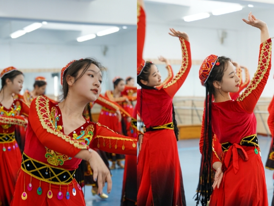 在本次公开课活动中,张晓涵老师带着17级五年一贯制的同学们展示了具有维吾儿族舞蹈风格特点的舞蹈课堂,通过学生对维族舞蹈动作形态之美的展示,精彩的展现出维族舞蹈的热情与奔放。