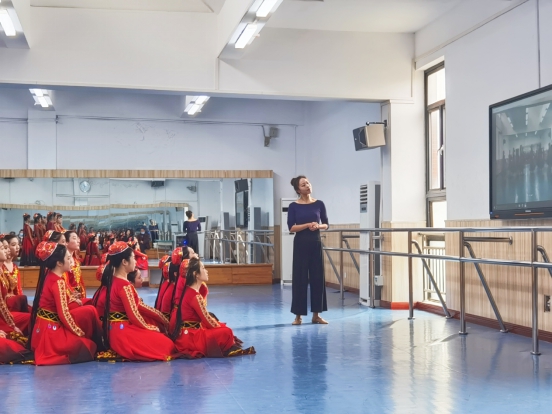 在本次公开课活动中,张晓涵老师带着17级五年一贯制的同学们展示了具有维吾儿族舞蹈风格特点的舞蹈课堂,通过学生对维族舞蹈动作形态之美的展示,精彩的展现出维族舞蹈的热情与奔放。