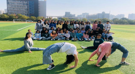 幼儿发展与健康管理专业的学生是多才多艺,生活也是多姿多彩的,蔚蓝的天空上飘着朵朵白云,他们踏着青春欢快的步伐,在操场上面做游戏,展示才艺,多开心啊。