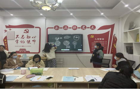 开班仪式后,美术教研室宋英老师就命题画的造型训练为学员授课,宋老师从命题画的概念和在幼儿园中的运用与学员展开了生动形象的讨论,接着分别从命题画的“一形多物”和“一物多形”两个方面给学员进行示范讲解。