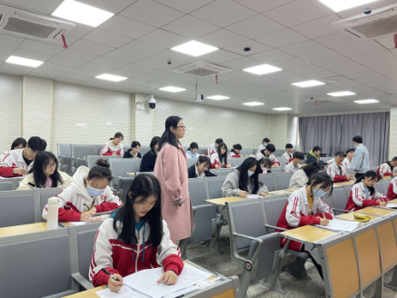 此次考试是中职毕业转段文化综合考试,考试时间09:30-12:00,每个考场安排两名教师监考,按中高职教师1:1的比例配置监考教师。考前考生手机一律上交,除文具和手表外,其他物品一律不允许带入考场。考前,监考教师阅读《考生应试守则》,严明考试纪律。考试过程中,师生全程佩戴口罩,考试过程紧张有序。