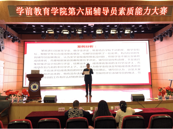 大赛设有“基础理论测试”和“案例分析”两个环节,共11位辅导员参赛。在“案例分析”环节,11名辅导员围绕核心问题、阐述解决思路、实施办法及相关启示,解答中渗透了导员们的工作理念,展现出辅导员在学生工作理论、方法指导下解决问题的高超能力,展示了我们辅导员们的工作魅力与风采。