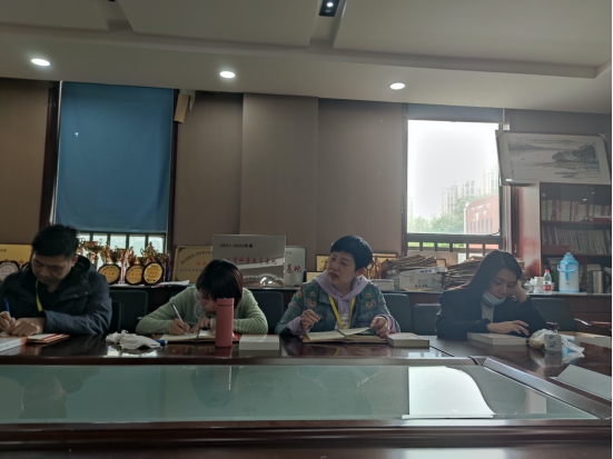 在第五项集体学习研讨中,全体党员根据文件要求集体学习,由劳丹、许萍、何晶、熊瑞四位同志分别就深入学习贯彻全国两会精神、全市党史学习动员大会精神、深入学习贯彻习近平总书记近期重要讲话精神等五项重点学习内容分享学习体会。