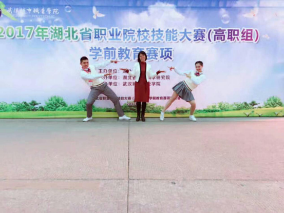 在常规教学之余,她还全身心投入到学生各项技能大赛的指导工作中去。2017—2019年,她连续3年参加学前教育专业教育技能大赛的国赛和省赛的指导工作,并和团队老师一起指导学生屡创佳绩!2017年5月,学生在全国学前教育专业教育技能大赛中荣获二等奖。2017年11月,她荣获湖北省职业院校高职组学前教育技能大赛一等奖优秀指导教师。