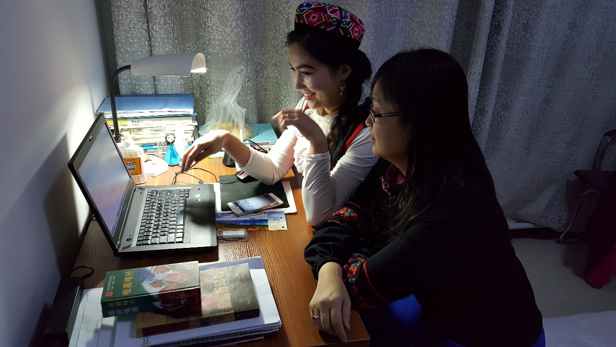 只要碰到关于新疆学生的困难,宋老师都会主动加入给予一定的帮助,帮助协调关系、细心与学生交流、去寝室看望、通过微信进行交流等。而获得身边同事的赞许时,宋老师只是微笑着回答说:“这都是我应该做的呀。”