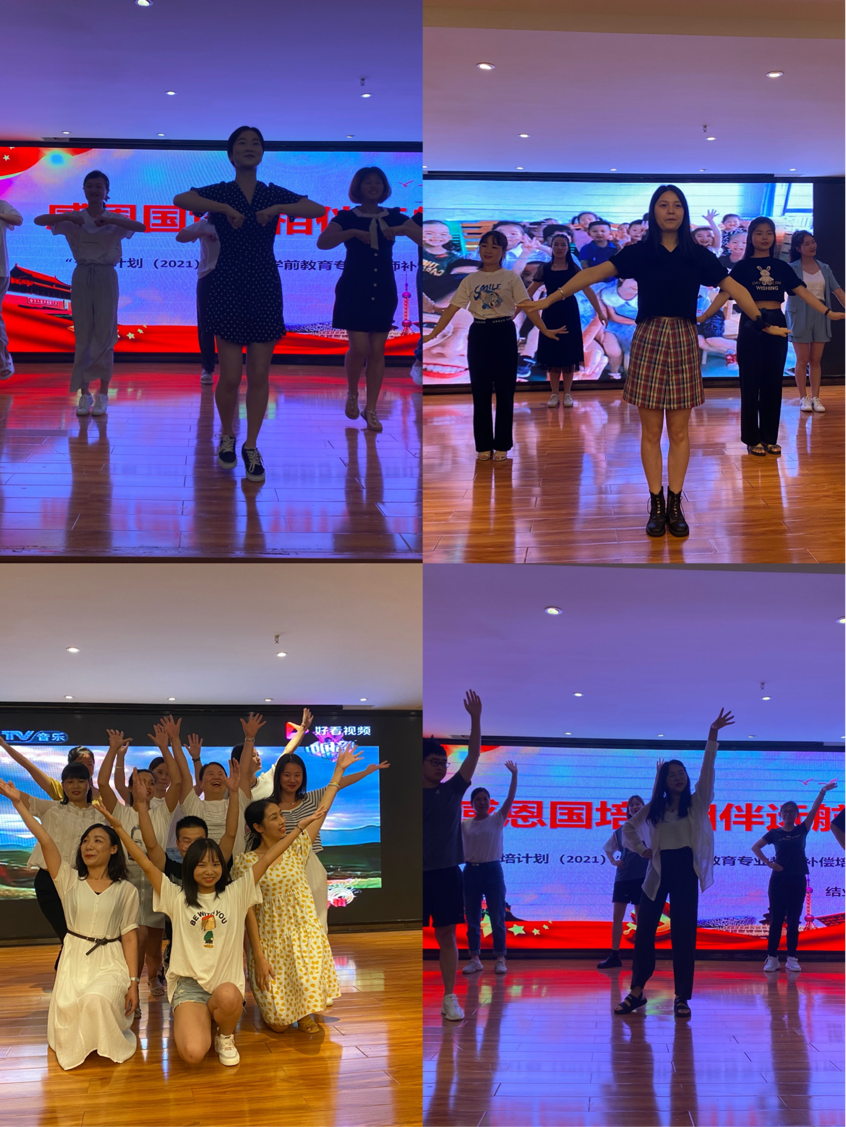 结业典礼更是学员们展示自我的舞台。致敬最美逆行者、献礼党和祖国成为结业典礼上的主旋律,热情似火的街舞串烧、激情洋溢的诗歌朗诵、自信大方的手势舞、欢乐纷呈的互动游戏等精彩节目让我们看到幼教人的多才多艺,让我们共同期待学前教育美好明天!