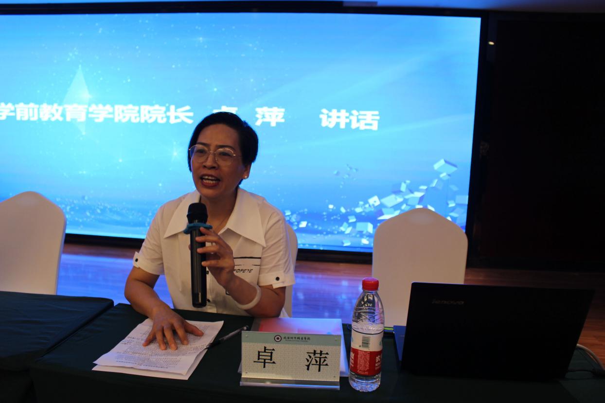 卓院长向学员们介绍学院悠久历史和取得的辉煌成绩,希望学员们珍惜学习机会,提高思想站位;转变角色,努力提升;注意形象,遵守纪律;明确学习目标,促进自我发展,将生命中最靓丽的风景定格在为学前教育事业努力的过程中。