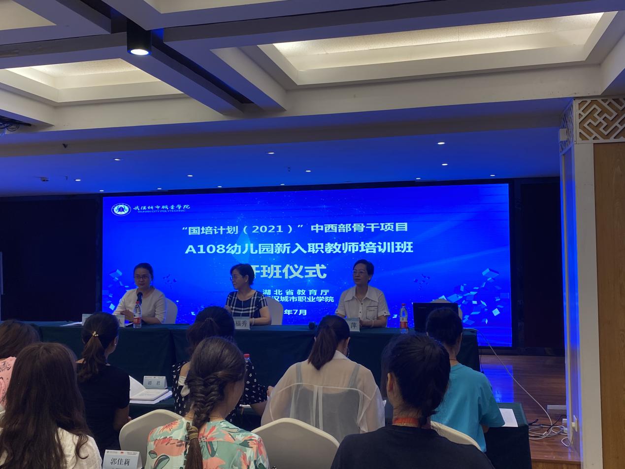 酷暑阻挡不住学习的脚步,7月17日上午8:30,在禾悦酒店“国培计划(2021)”中西部骨干项目幼儿园新入职教师培训班举行庄严的开班仪式。开班仪式由继续教育学院董云燕主任主持,继续教育学院汪福秀院长、伟徳官网卓萍院长、出席并发言,培训班班主任、志愿者、培训相关管理人员及200名学员参与开班仪式。