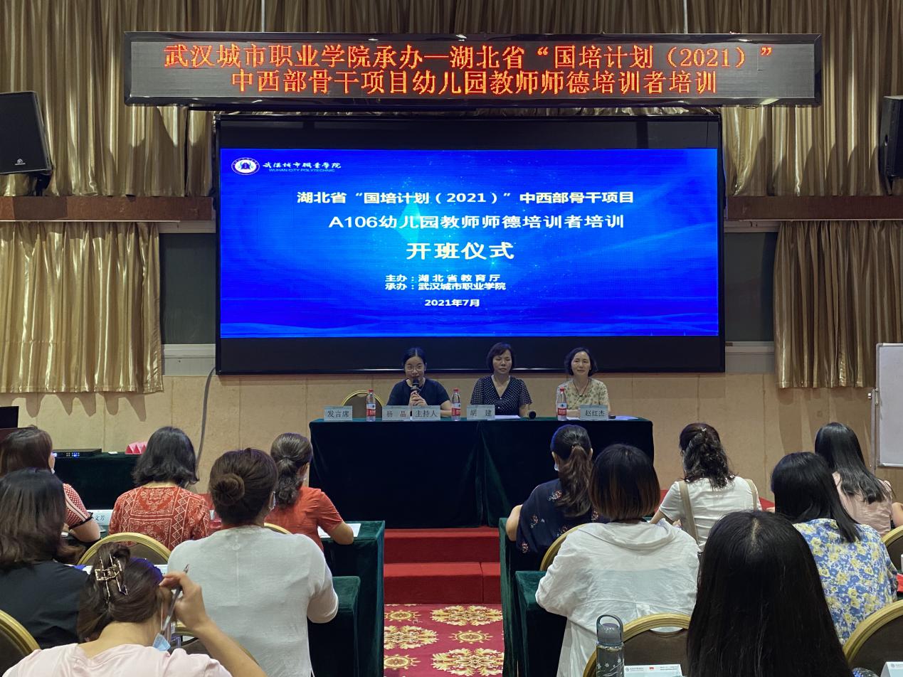 7月19日,来自湖北省内100名学员齐聚阳光128大酒店,进行为期10天的湖北省“国培计划”中西部骨干项目幼儿园教师师德培训者培训。在轻松的律动活动中,20日上午8:30在酒店会议室举行开班仪式。仪式由BV伟德官方网站继续教育学院杨晶老师主持,BV伟德官方网站继续教育学院胡建副院长、伟徳官网赵红杰主任出席开班仪式,班主任黄蔚老师、志愿者及培训相关工作人员参与仪式。