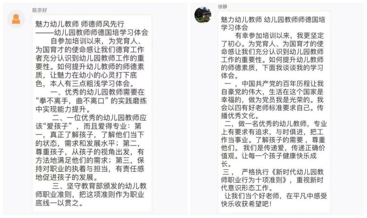 强国在学前,质量在教师。十天的“国培计划”幼儿园教师师德培训者培训班落下帷幕。回顾学习、修炼的过程,学员们创建良好班风,每一天面对不同风格的老师都能感受到思想火花的冲击,学习研修的每一分、每一秒、每一天都有学员们热烈的讨论,忙碌的身影,坚定的眼神和跃动、炙热的心。