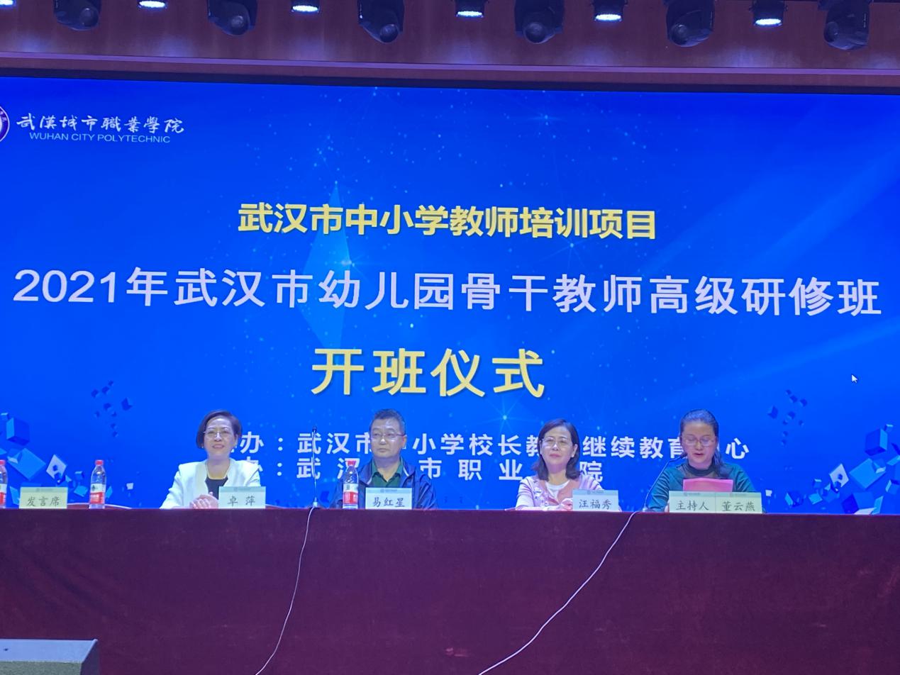 金秋十月,丹桂飘香。在丰收的季节里,10月13日上午,由武汉市中小学校长教育继续教育中主办,BV伟德官方网站承办的“2021年武汉市幼儿园骨干教师高级研修班”在伟徳官网小礼堂举行开班仪式。在疫情防控常态化背景下,此次开班、培训采用线上教育教学模式。出席开班仪式的有武汉市中小学校长教师继续教育中心易红星教授、伟徳官网院长卓萍教授、BV伟德官方网站继续教育学院院长汪福秀教授、湖北工业大学幼儿园学员代表吴嘉希老师,BV伟德官方网站继续教育学院主任董云燕老师主持开班仪式。