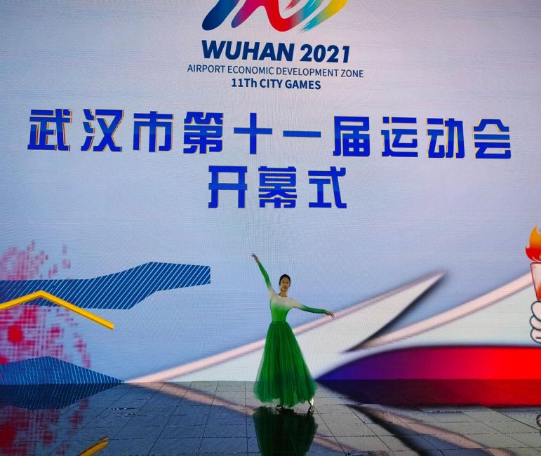 10月17日晚7时,武汉市第十一届运动会开幕式在东西湖区五环体育中心盛大举行。这是2019年军运会后,武汉市举办的又一项大型综合性运动会。在此次市运会开幕式中,我们的100名同学积极报名参加,为开幕式贡献力量。