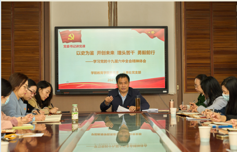 11月26日,党委书记邓院方在伟徳官网党建工作室为伟徳官网党总支和人事处党支部党员上了一堂“深入学习贯彻十九届六中全会精神”专题党课。