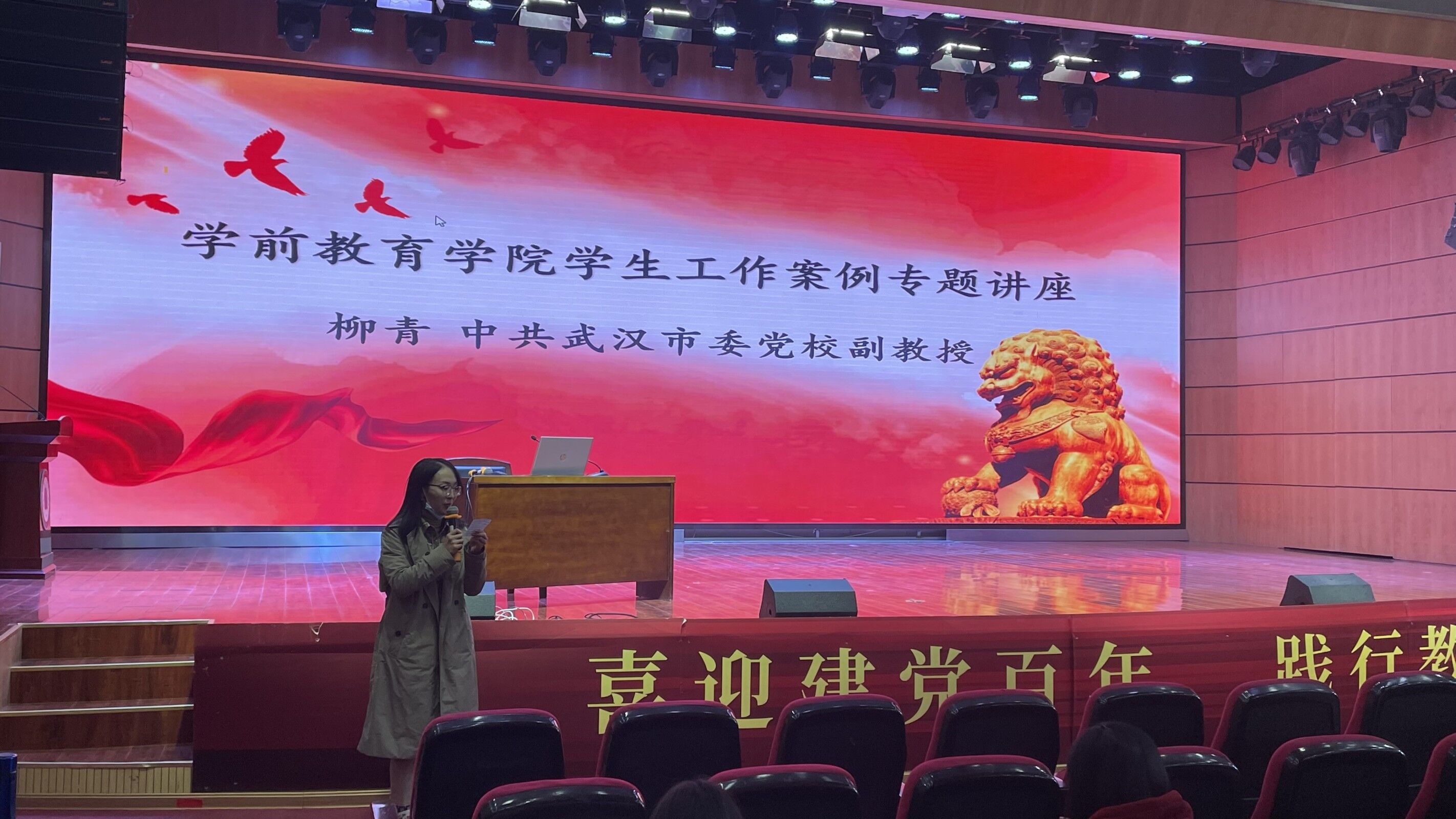 为了进一步帮助班主任老师开展学生工作,提高教育教学能力。12月2日下午,伟徳官网小礼堂开展了学生工作案例专题讲座。此次讲座特邀请中共武汉市委党校副教授柳青担任主讲,伟徳官网党总支书记张沛主持,伟徳官网副院长杨爱苹、全体班主任和辅导员老师参加学习。