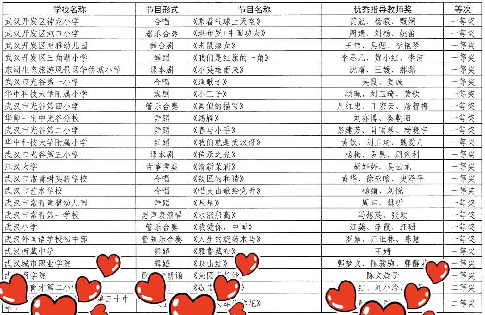 今年3月,武汉市第十三届学校艺术节活动拉开序幕,我们分团委在校团委号召下,积极组织师生搭建参演团队,悉心准备作品。近日,在武汉市教育局公布的获奖名单中,我们舞蹈教研室郭梦文老师、陈骏驹老师、校团委郭静若老师指导的舞蹈作品《映山红》荣获一等奖!荣誉的获得不仅是对老师们辛勤耕耘、默默奉献的肯定,更是对参演学生认真学习、踊跃参与文艺活动的认可与鼓励。
