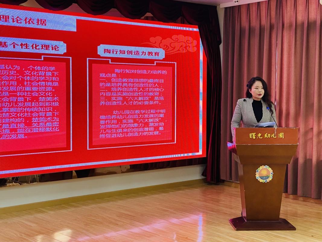 3月26日,中国学前教育研究会“十四五”研究课题《楚美术元素在幼儿园美术教育活动中的应用研究》开题论证会在武汉市直属机关曙光幼儿园举行。我们学前美术教研室马少林老师、彭凌宁老师受邀,与湖北省非物质文化遗产研究中心主任,长江流域文化遗产研究所所长张昕教授参加了开题论证会。