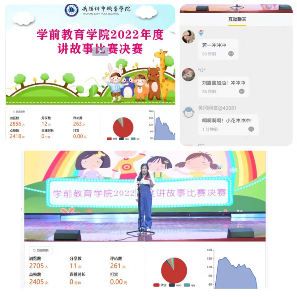 能干的大象、聪明的乌龟、可爱的小兔子、自以为是的三脚猫……一个个精彩的童话故事,被选手们演绎得栩栩如生,得到了现场评委和观众们的频频称赞。后台数据显示,网上同步观看比赛的师生超过2800名。线上观看的同学们被生动有趣的故事和惟妙惟肖的讲述所吸引,热情高涨,积极留言参与互动,不断为选手们加油喝彩!