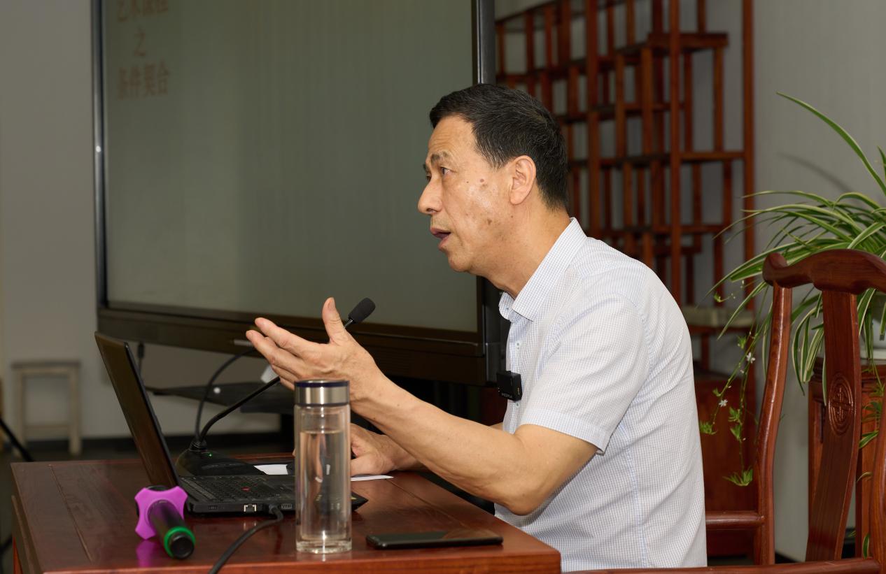 美术教研康琳老师就学生艺术素养的量化体现与孙教授展开讨论,孙教授表示艺术老师应具有收集学生作品的意识,以方便为学生的学习提供前后参照,为自己的教学提供总结依据;音乐教研室胡海燕老师提出,音乐教学中教师需要提高学生音乐素养,但学生实际水平很难达到教师要求。对此,孙教授提到可将提高学生音乐素养和审美能力融入到每一堂课的教学中,逐渐培养学生的审美意愿和表现能力。