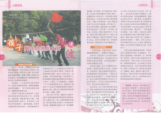 2002年,一个高于普高分数线的“大个子”男孩在常人不解的眼神中踏入了武汉市幼儿师范学校的大门,成为了五年一贯制学前教育专业的一名学生。从选专业到学专业,邹进波始终坚守自己的初心,坚定投身幼儿教育事业的决心,努力践行成为一名“优秀幼教人”的誓言。