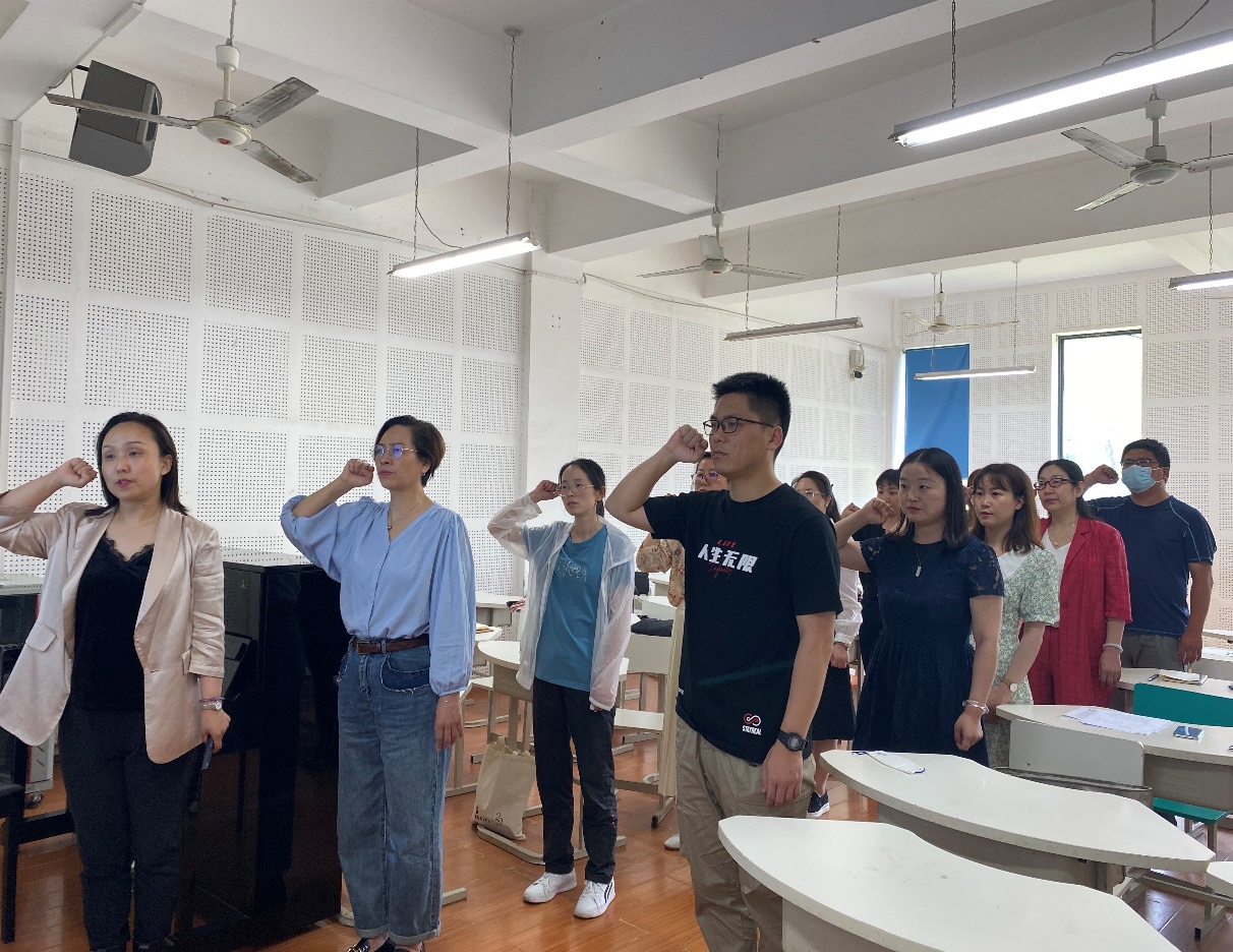 本次党日活动由学前教师第二党支部书记马豫主持。按照会议流程,学前教师第二党支部党员教师们集体重温了入党誓词。