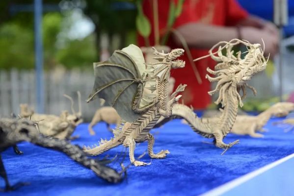栩栩如生的各种草编、汉绣、剪纸等,队员们在一旁认真观看学习,结合专业所学,剪出许多好看的花样。