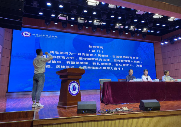 6月22日,在艺术楼小礼堂举行了隆重的开班仪式。开班仪式由继续教育学院院长曾菁主持,学校校长杭勇敏、伟徳官网院长卓萍、学员代表陈潘出席开班仪式,培训班主任、志愿者及工作人员参与此次活动。