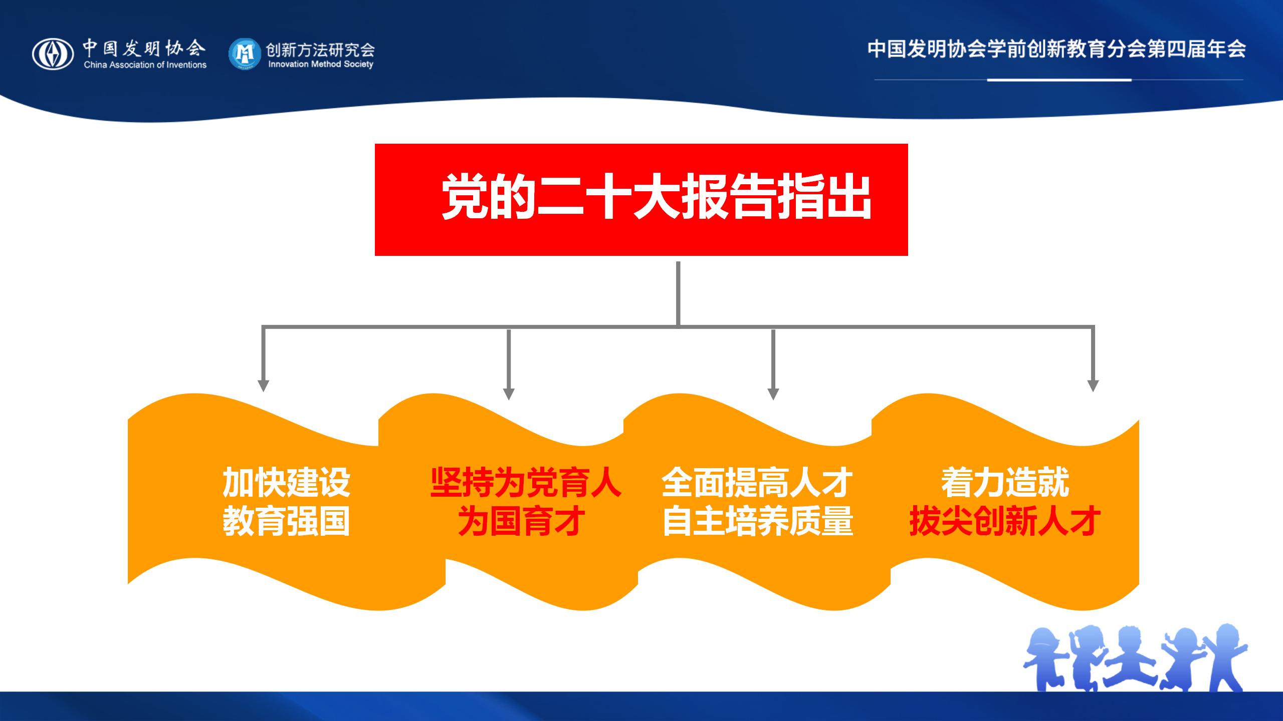 程淮会长经过多年的研究曾说过:发明创造不是天才人物的专利而是普通孩子都可以学习掌握的能力;发展儿童的创造力完全有方法可依、有规律可循!创新教育从孩子一出生就应开始抓起。为了推进学前创新教育的蓬勃发展,培养领军人物势在必行。