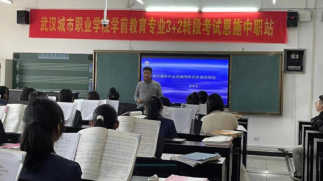 在送教活动中,音乐教研室汪宇飞老师给幼儿保育专业的学生带来了《弹好钢琴作品对钢琴即兴伴奏的帮助》课。汪老师以丰富的教学经验及课堂驾驭能力,充分调动了同学们的积极性,为恩施中职的孩子们送上了一场教学盛宴。